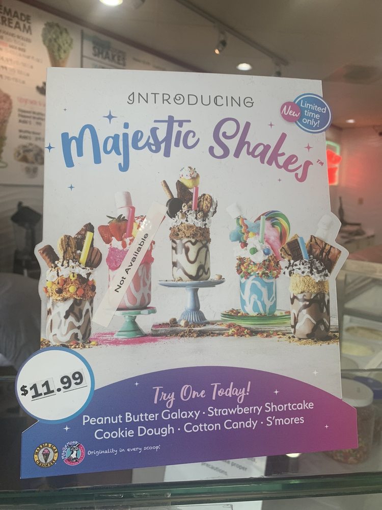 Indulge in unique creations like the Majestic Shake or personalize your own ice cream cake with a selection of fresh ingredients. Highlights include the limited-time Turtle Ice Cream infused with Snickers for a truly decadent treat.